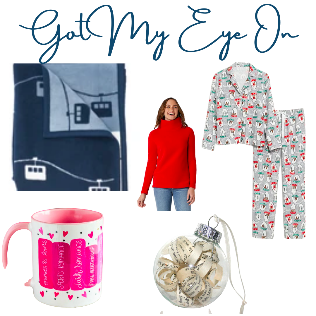 Snow Globe PJs // Ski Lift Blanket // Jane Austen Ornament Set // Romance Trope Mug // Red Dudley Stephens