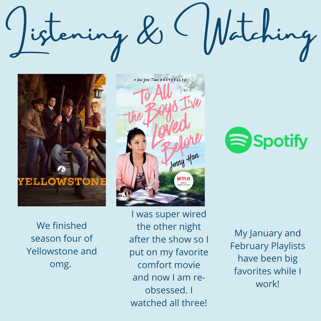 This week started out pretty rough but we got some sunshine and it did WONDERS for my mental health. As much as I love the snow and cozy days, I’m realizing more and more how much I need the sunshine. I’m going to look into vitamin D supplements and the like because it was looking a little bleak for me last week lol.