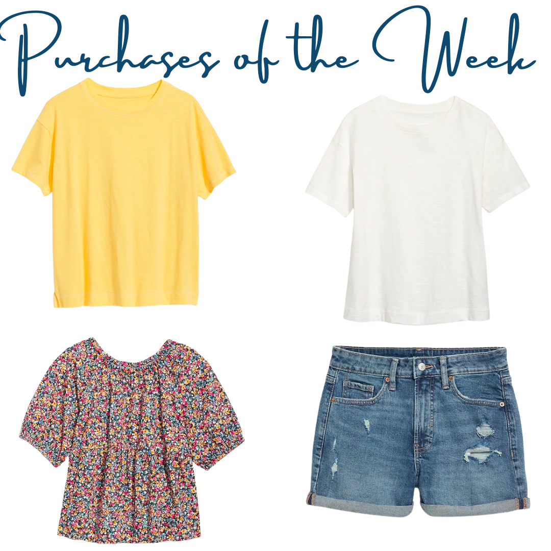 I love love love these boxy vintage tee’s from Old Navy. They had them a few years ago and they’re a thicker material than a normal tee. I love that they’re “cropped” but don’t show any skin (it’s just not my vibe) but don’t cling to my body. I sized up to an XL in both. The floral top was an impulse vibe and I am obsessed with the denim shorts, the reason I went in!