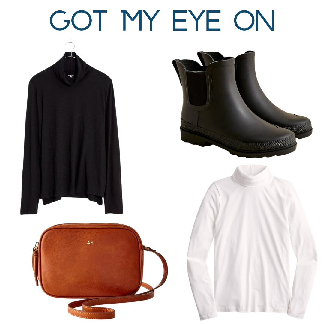 You can tell Fall is coming based on what I’m gravitating toward. Some turtlenecks for layering, a new pair of Chelsea boots, and a neutral bag.