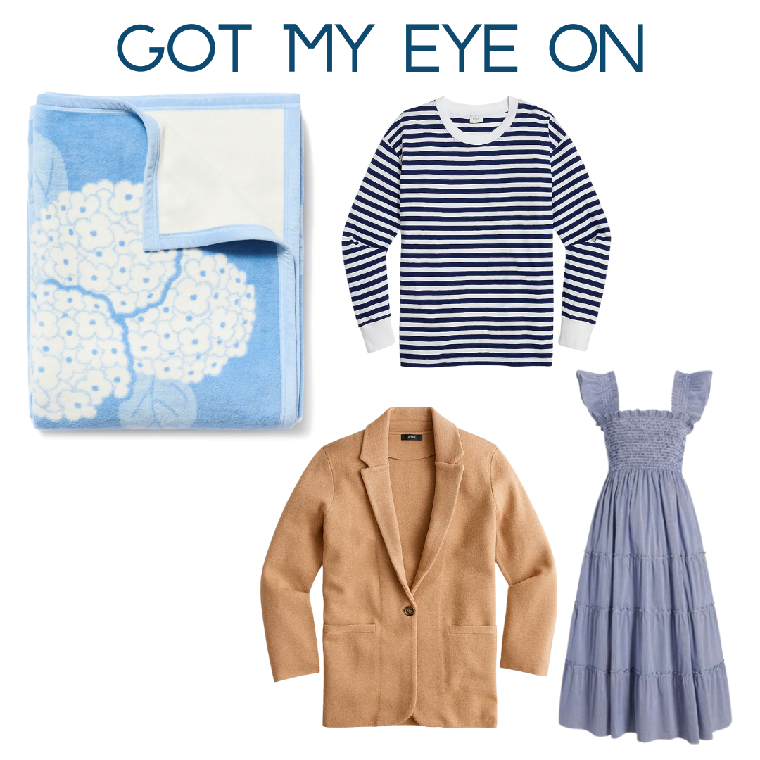 Nap Dress // Chappy Wrap Hydrangea Blanket // Sweater Blazer // Striped Tee //
