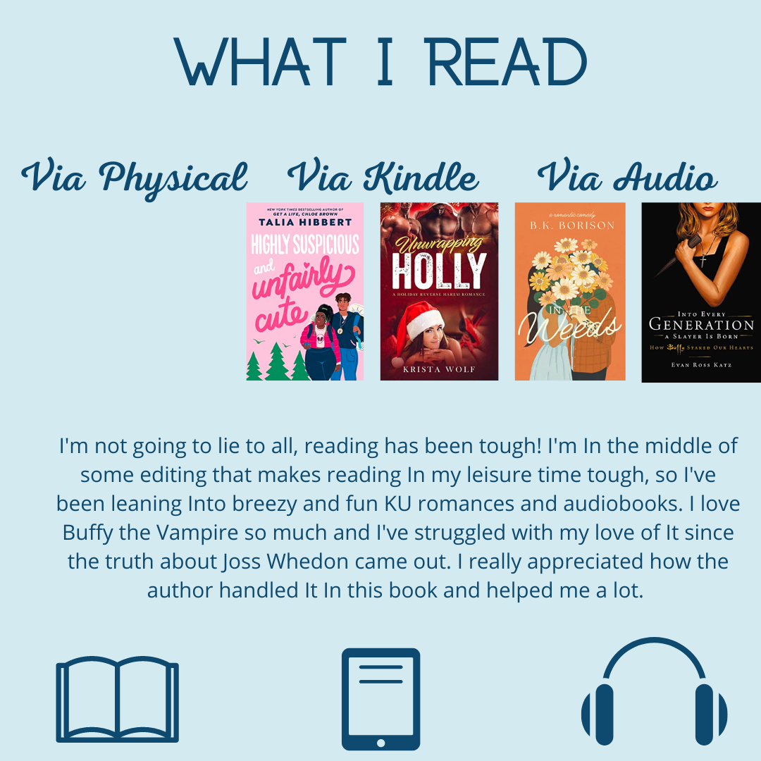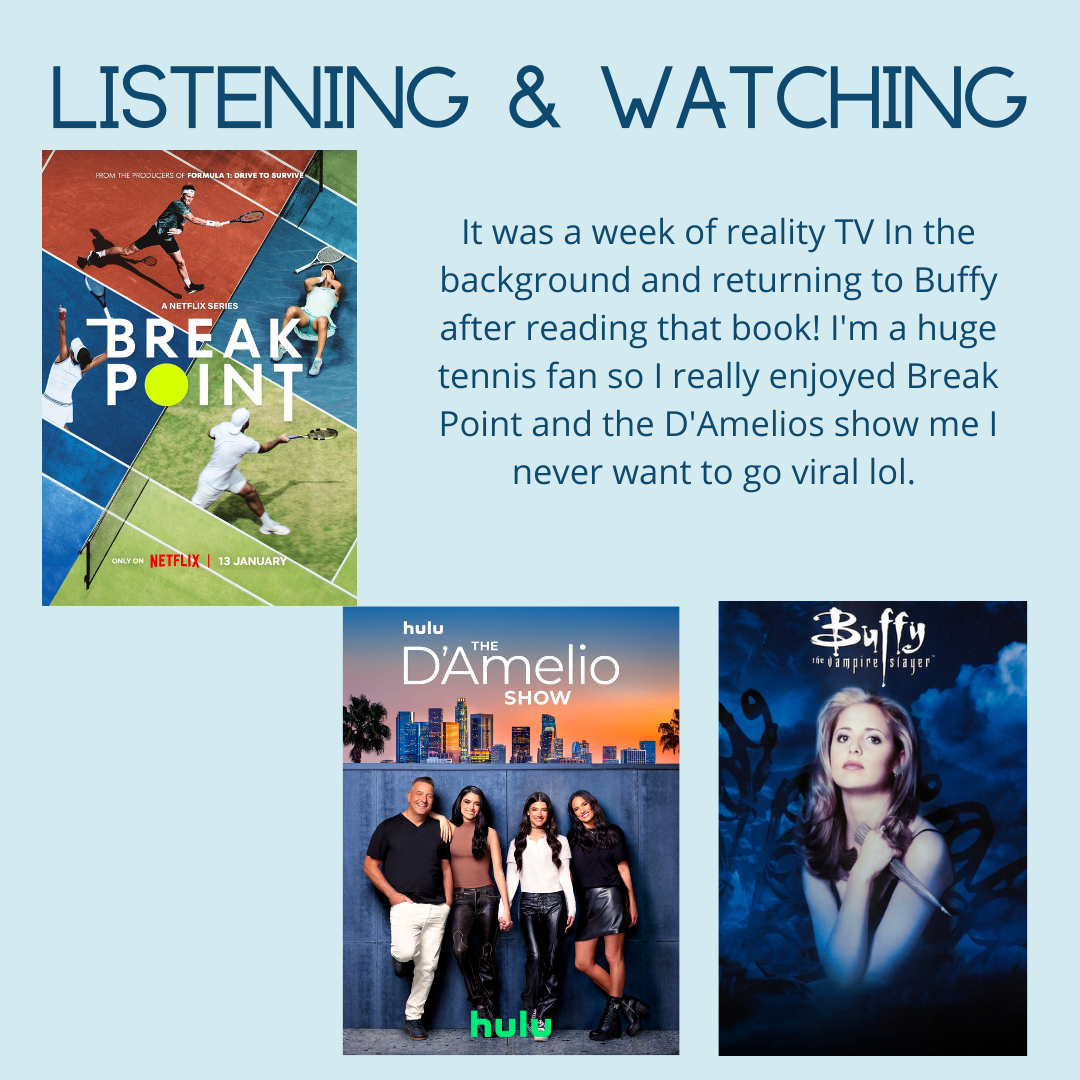 I don’t have a lot of spare reading time lately and it’s making me feel a little off. I’m trying to find time to schedule it in, because it means a lot to me, and part of that is getting my morning and evening routines in check! I hope you all had a great week. Let me know what you’re reading!