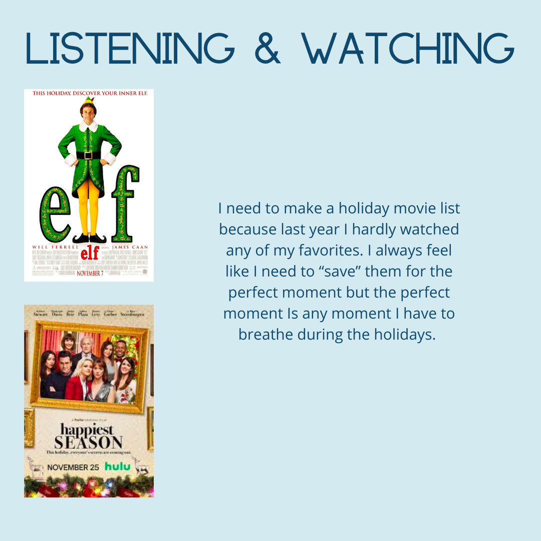 Happy December! I can’t believe we’ve reached the last month of 2023. I have a lot of feelings that are wrapped up in my head about what it means, but honestly, I just want to enjoy this month. Life has been pretty hard lately, especially in November, and I’m ready to make the most of each small day. My goal for this month is to be as intentional as possible with my time. I spent a lot of November scrolling and disassociating because that’s what I needed in the moment, but I’m ready to be intentional with caring for myself mentally and physically.