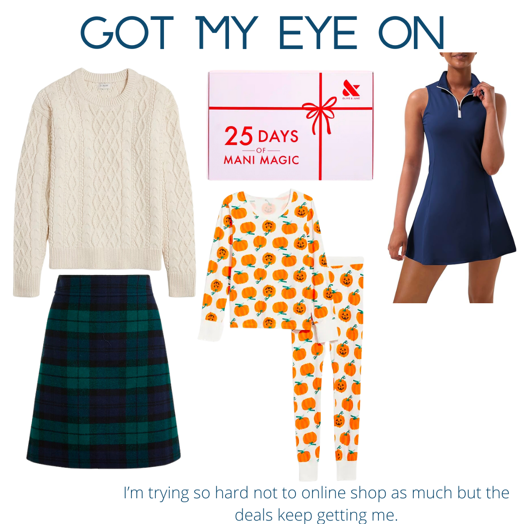 Plaid Skirt // Rory Gilmore Sweater // Tennis Dress // Fall Pajama Set // Olive & June Advent Calendar