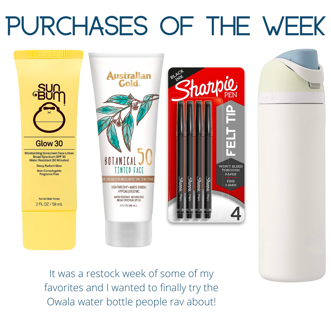 Sun Bum Glow // Australian Gold CC Cream // Owala Water Bottle // Sharpie Pens