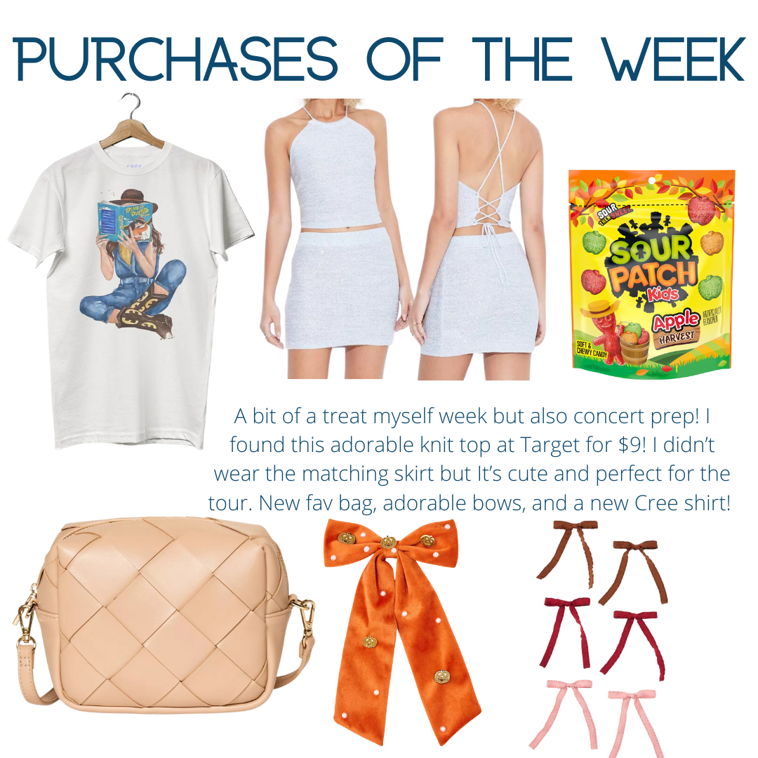 Done and Dusted T-Shirt // Mini Cube Crossbody // Backless Sequin Sweater Tank // Sour Patch Kids Harvest Apple // Velvet Halloween Bow // Fall Ruffle Mini Bows //
