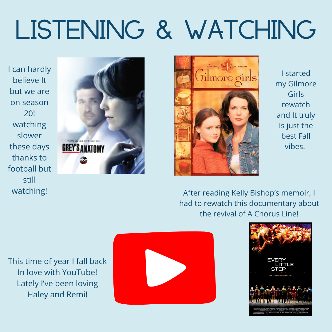 I have some very busy but very fun weekend plans! First up is work followed by seeing a show downtown and then I’m attending an Ina Garten themed party! I am so excited. My friend Jamie is basically Ina in her thirties so we’ll be celebrating the release of her memoir with an Ina themed potluck. I am going to be making this recipe which is a favorite that my mom usually makes. And then on Sunday, i’m working at the bookstore and then it’s Sunday Night Football for the Bills! I’m feeling really grateful for all the fun and exciting plans I’ve had recently. I’m also so glad I’ve been saying “yes” to a lot more. I’ve still got the Big Sads about some things, but pushing myself out my comfort zone has made me feel a lot better.